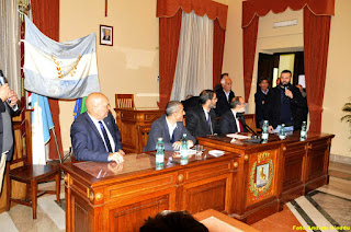 LA MAGLIA DEL CENTENARIO DELL'ILVAMADALENA CHE GIOVANNI SCANU CONSEGNA AL VICE PRESIDENTE FIGC DESINI